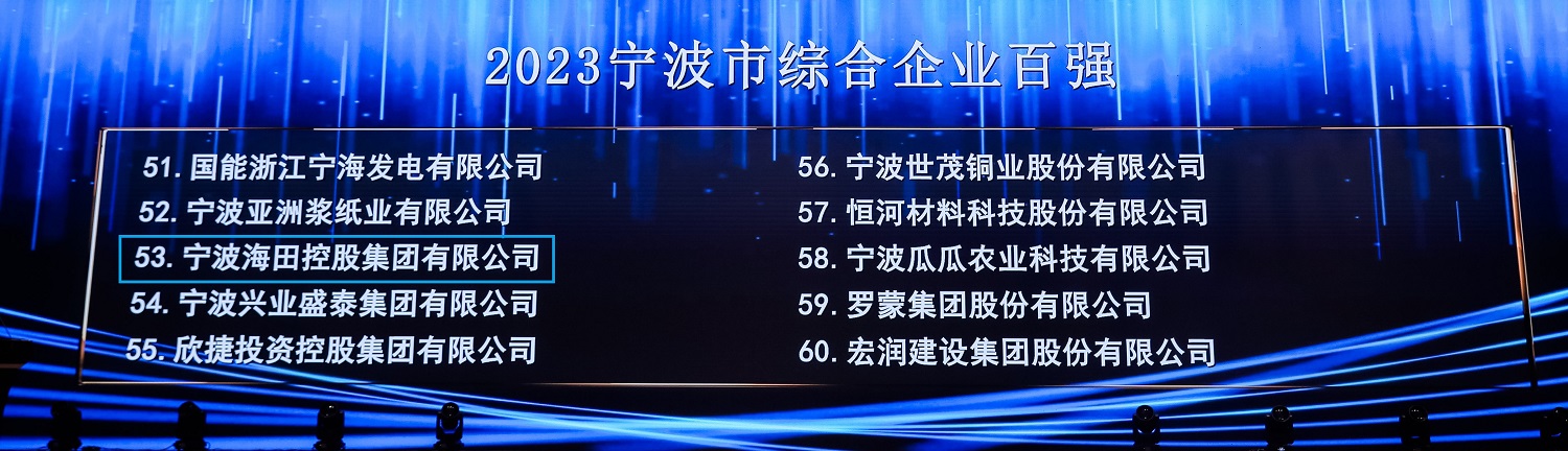 在這份含金量十足的榜單中,寧波海田控股集團(tuán)以2022年營業(yè)收入1069435萬元的成績獲得寧波市綜合百強企業(yè)第53位和寧波市服務(wù)業(yè)百強企業(yè)第15位。