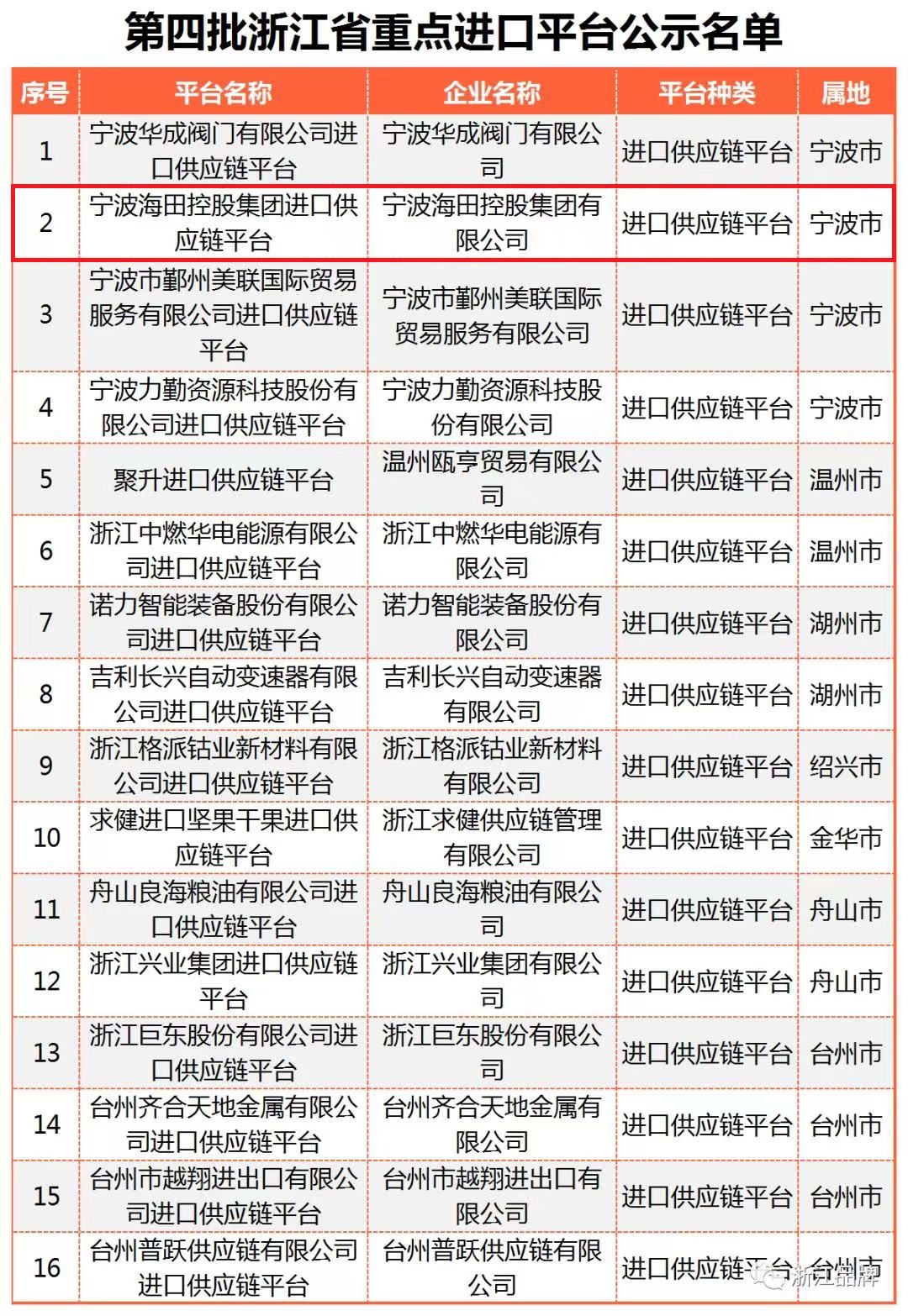 近日,浙江省商務廳公布第四批浙江省進口貿易促進創(chuàng)新示范區(qū)和重點進口平臺名單,寧波海田控股集團進口供應鏈平臺獲評浙江省重點進口平臺稱號。